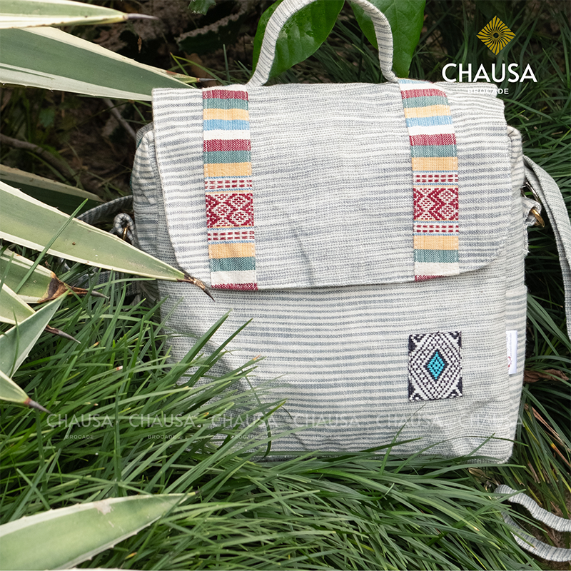 nữ thổ cẩm thủ công dân tộc H'Mong - CHAUSA Brocade Balo đeo vai mini nữ thổ cẩm thủ công, chất liệu vải lanh