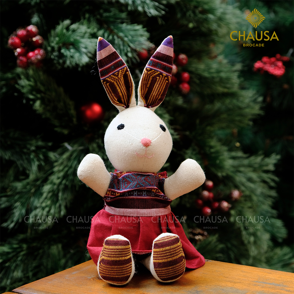 Thú Nhồi Bông Thổ Cẩm Handmade CHAUSA Brocade - THỎ NGỒI thổ cẩm thủ công, đồ chơi thú nhồi bông quà noel, giáng sinh